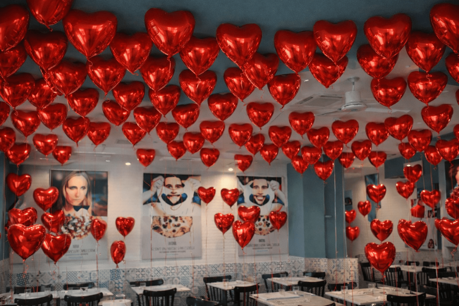 San Valentino è una ricorrenza che richiede un’attenzione particolare ai dettagli e all’atmosfera. Il pubblico che frequenta locali, ristoranti, sagre e feste di piazza in questo periodo non cerca semplicemente una serata fuori, ma un’esperienza capace di emozionare e sorprendere. L’allestimento con palloncini a cuore in mylar rosso nasce proprio per rispondere a questa esigenza, offrendo una soluzione scenografica di grande impatto visivo, oggi disponibile anche in promozione speciale per San Valentino. L’immagine dell’allestimento parla chiaro: un soffitto completamente riempito da cuori rossi sospesi, lucidi e brillanti, che avvolgono il pubblico in un’atmosfera intensa e romantica. È una scenografia che cambia radicalmente la percezione dello spazio, rendendolo immediatamente riconoscibile come luogo dedicato a San Valentino e creando un effetto “wow” che resta impresso nella memoria di chi partecipa.