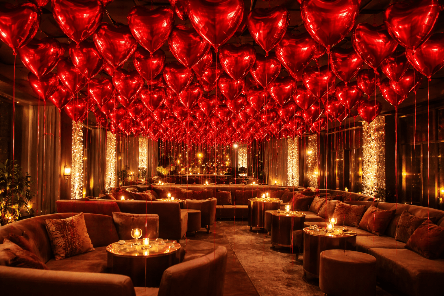 L’allestimento con palloncini a cuore in mylar rosso garantisce un effetto scenico costante per tutto il weekend di San Valentino. È una soluzione ideale per chi organizza eventi su più giorni o per locali che prevedono un’affluenza continua tra venerdì, sabato e domenica. Con un’unica installazione, l’atmosfera resta intensa, coerente e visivamente potente per l’intera durata dell’evento. Questo aspetto è particolarmente importante per chi punta anche sulla comunicazione visiva e sui social. Un ambiente così scenografico invita naturalmente il pubblico a scattare foto e video, generando contenuti spontanei che aumentano la visibilità dell’evento e del locale stesso.