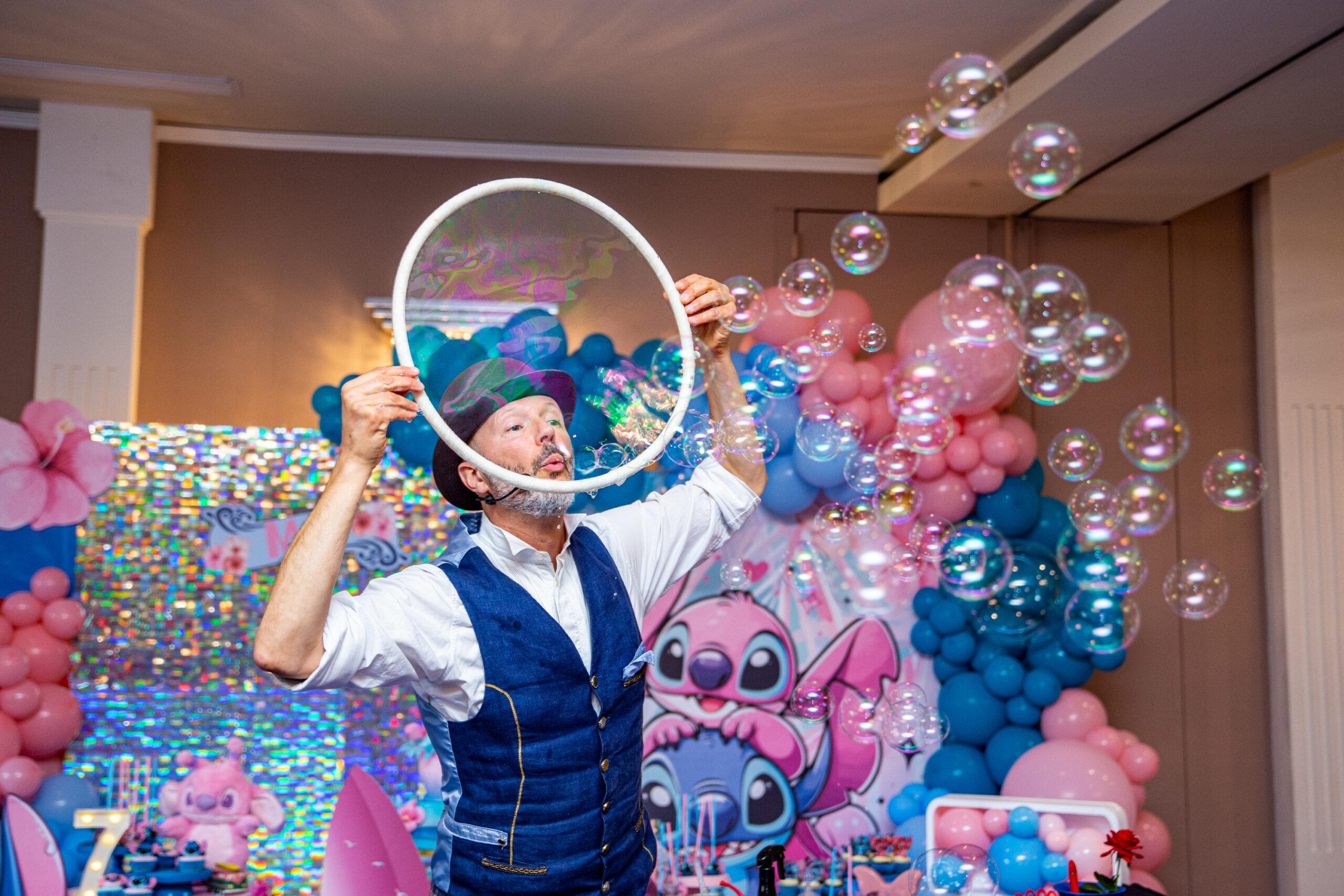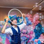 Questo tipo di spettacolo è particolarmente indicato per sagre e feste di piazza perché non richiede strutture invasive e si adatta con grande flessibilità alle diverse configurazioni degli spazi. Lo Spettacolo delle Bolle si inserisce in modo naturale all’interno dei programmi di eventi pubblici, valorizzando la manifestazione e offrendo momenti di intrattenimento continuo e accessibile a tutte le fasce d’età.